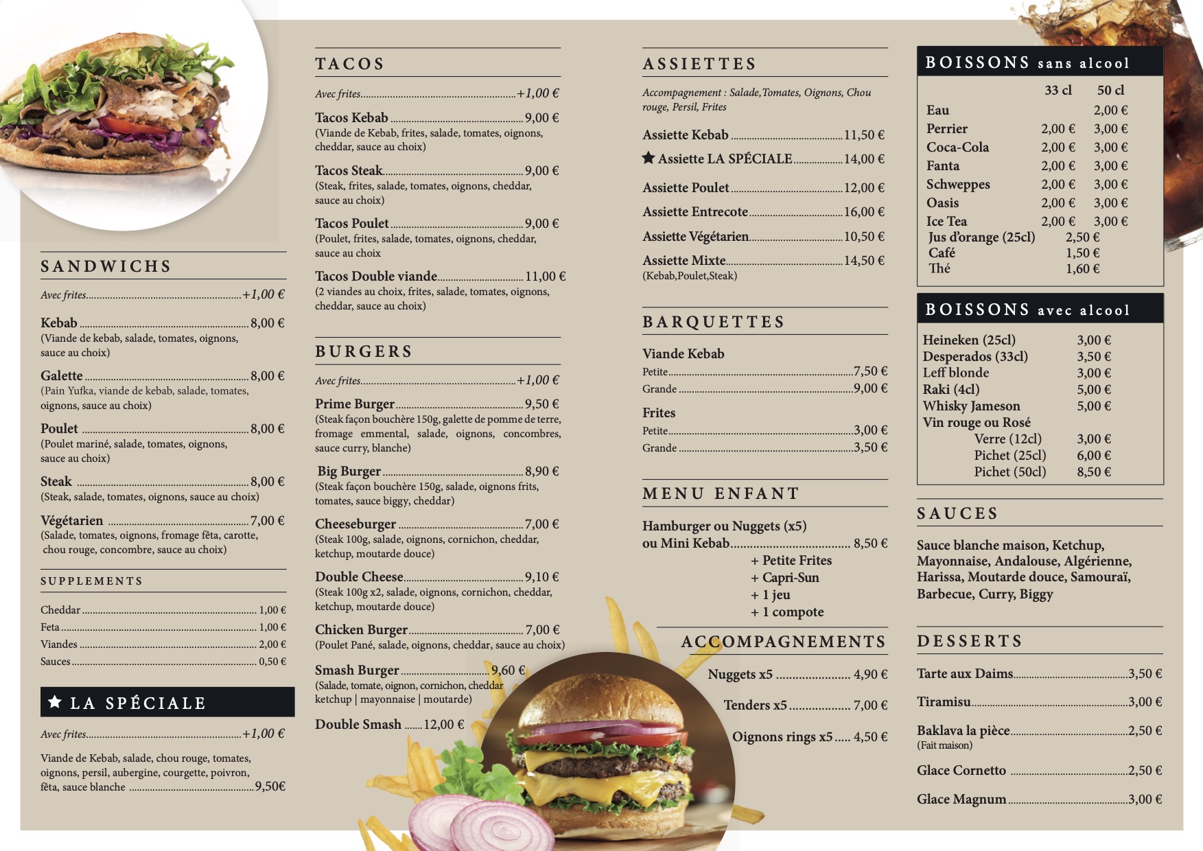 Votre restaurant Pordic Kebab&Bruger vous propose des sandwichs Kebab, Burger et Tacos à venir déguster sur place ou à emporter.